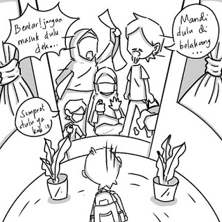 Komik Islami Hitam Putih Tentang Mudik Atau Pulang kampung karena Corona.