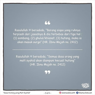 Selalu pikirkan matang-matang, sebab hutang bukanlah masalah sepele. Dan ingatlah, hutang pada manusia tidak bisa dilunasi hanya dengan istighfar