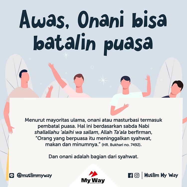 Intinya, onani menyebabkan puasa batal dan wajib mengqodho’, tanpa menunaikan kafarat.